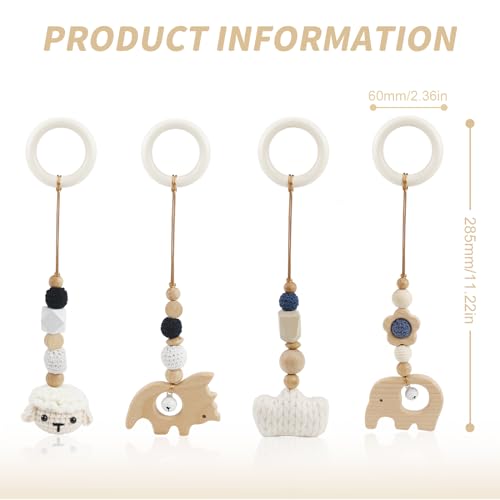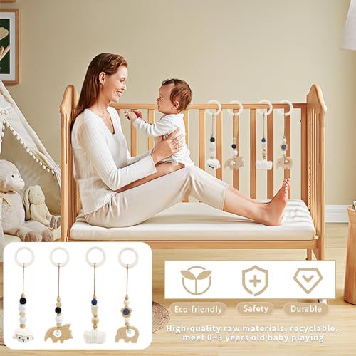 【Hochwertige Materialien】Baby Gym Anhänger hergestellt aus ausgewähltem Qualitätsholz, sicher, umweltfreundlich, BPA-frei, gesund, ungiftig, Robuste, reine Handarbeit, Design mit abgerundeten Ecken, keine scharfen Teile, langlebige und Premium-Qualität. Montessori Spielzeug Baby Material Premium und alles Zubehör sicher und freundlich für Ihre Babyhaut oder Gesundheit.