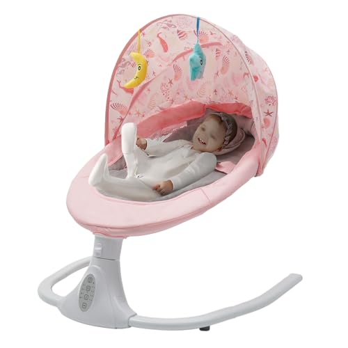 Babywippe für Kinder mit Fernbedienung & Bluetooth, Zeiteinstellung, Max Tragfähigkeit 18kg, Automatische Schaukel, für Babys 0 bis 18 Monaten (Rosa)