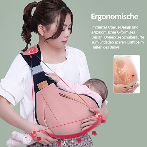 Tyuodna Tragetuch Baby,Babytrage Neugeborene ab Geburt,Verstellbare Babytragetuch mit Dicken Schultergurten,Tragegurt Baby,Baby Carrier für Babys von 0 bis 36 Monaten (Pink)