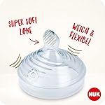 Mit dem NUK Perfect Start Set aus vier Babyflaschen, zwei Ersatz-Trinksaugern, einem Silikon-Schnuller und einer Transportbox hat Ihr Baby die besten Voraussetzungen für einen gelungenen Start ins Leben. Die Nature Sense Babyflaschen haben viele feine Öffnungen am Trinksauger, die der Mutterbrust nachempfunden sind und für einen natürlichen Trinkfluss sorgen. Die extrabreite Lippenauflage ermöglicht ein brustähnliches Trinken und ist damit ideal zum Beifüttern. Dank dem NUK Anti-Colic Air System können Babys entspannt trinken, ohne dabei Luft zu schlucken. Jede Flasche ist außerdem BPA-frei und strapazierfähig. Das Set enthält darüber hinaus einen NUK Genius Schnuller mit einem weichen und flexiblen Lutschteil, das die gesunde Oralentwicklung fördert, eine wiederverwendbare Transportbox, die zur Sterilisierung in der Mikrowelle verwendet werden kann, und eine Twist-Flaschenbürste, mit der sowohl Flaschen als auch Sauger effektiv gereinigt werden können.