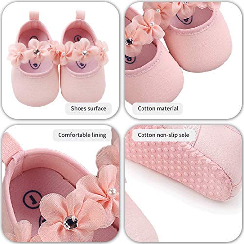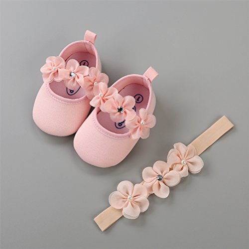 EDOTON 2 Pcs Kleinkind Schuhe+ Stirnband, Baby Mädchen Blumen Schuh Anti-Rutsch-Weiche Besondere Anlässe Taufe Hochzeit Party Schuhe