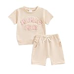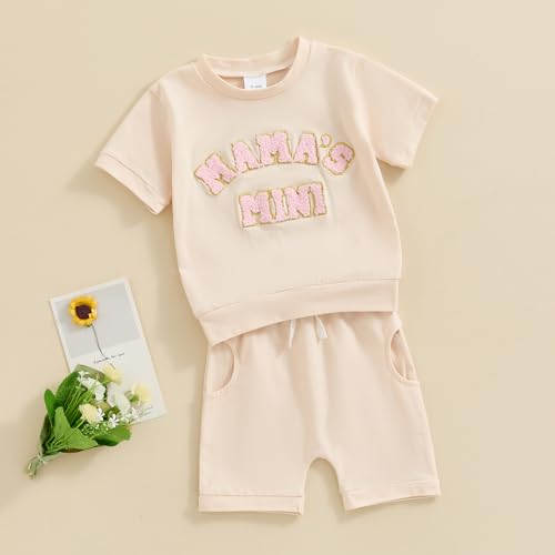 Xeadoffubio Baby Mädchen Muttertagsset MAMA’S MINI/GIRL/BESTE Bekleidungsset 2 Teiliges Kurzarm Rundhals Lustige Buchstaben Sweatshirt+Elastische Taille Kurze Hosen Sommer Outfit