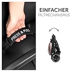 Durch das ‚Press & Pull‘-System mit gepolsterter Trageschlaufe wird der Buggy sekundenschnell mit nur einer Hand kompakt gefaltet. So kannst du den Allrounder einfach in den Bus tragen, auf engstem Raum verstauen und hast immer eine Hand für dein Kind frei.