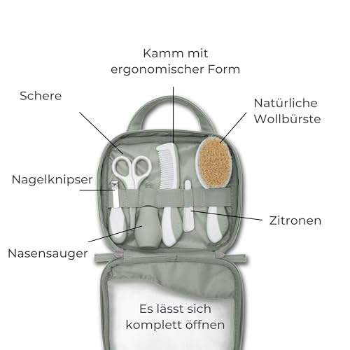 Sicherheit: Unser professionelles Pflege- und Hygiene-Set für Babys besteht aus hochwertigem BPA-freiem Edelstahl, Kunststoff und natürlicher Wolle. Alle Materialien sind auch für Neugeborene sicher. Vergessen Sie die stressigen Momente, in denen Sie die Nägel Ihres Babys schneiden oder ihre Haare kämmen. Unser Set macht diese Aktivitäten schnell und angenehm, denn wir sind glücklich, wenn Sie und Ihr Baby sind