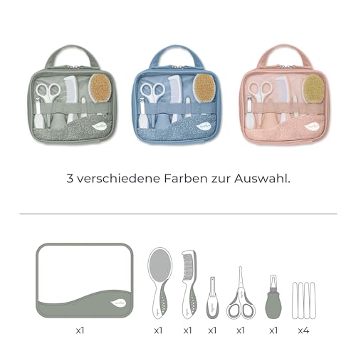 Nuvita 1146 | Komplettes Babypflege-Set | Kosmetiktasche | Schönheit für Babys | Nagelschere und Haarschere | Ideal für Kindergarten und Reisen | BPA-frei | Powder Blue