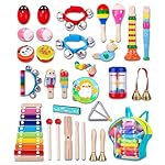 🎁【Wunderschönes Musikinstrumenten-Set】: 32 Stück von 18 Arten von Rhythmusinstrumenten können Kindern unterschiedliche Spielerlebnisse bieten, darunter Schütteln, Klopfen, Schlagen und Blasen. Es ist besser für Kinder im Vorschulalter, mit Musik als mit Schlagzeug anzufangen. Einfach zu verstauen und zu tragen.(holzspielzeug ab 3 jahr)