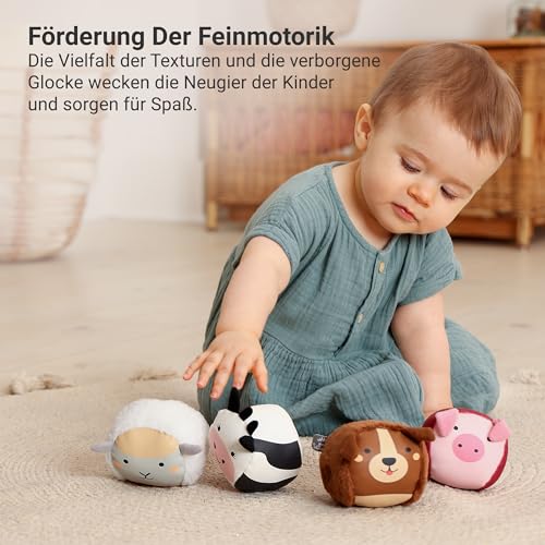 Little Big Friends Roly Poly Balls | Sensorisches Ballspielzeug für Babies, 4er Set | Bauernhof-Design