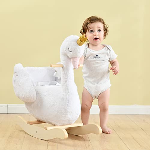 labebe Schaukeltier, Schaukelpferd, Schaukelspielzeug für Kleinkinder, weißer Holz-Schaukelstuhl
