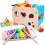 3 in 1 Baby Spielzeug: Holzxylophon, Kopfbank und Steckbox! Aus robustem hochwertigem Holz hergestellt, besticht das Babyspielzeug durch eine sorgfältige Verarbeitung. Bunten Farben, 100% sicher und ohne Gift für das Baby. Ein perfektes Weihnachtsgeschenk Neujahrsgeschenk für 18 Monate alte Jungen Mädchen Kleinkind