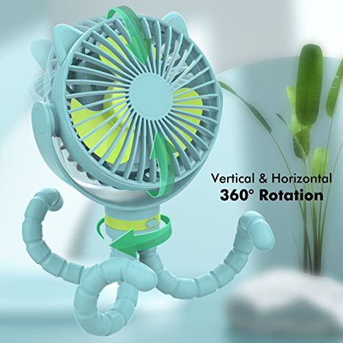 ITSHINY Kinderwagen Ventilator, Leise Kinderwagenlüfter mit Flexibler Stativ, Tragbarer Ventilator, Tischventilator, Handventilator Wiederaufladbare 4000 mAh für Kinderwagen Autositz Fahrrad Camping