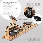 SportPlus Wasser-Rudergerät für zuhause aus Natur-Massivholz (Eiche), Holz-Rudergerät mit Trainingscomputer, Rudermaschine mit Tablethalterung für Ausdauertraining, Rowing Machine optional klappbar