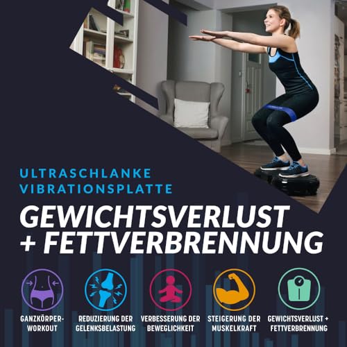 FITNESS OPTIONEN, DIE DU NUTZEN WIRST! – Die Ultradünne Power Vibrationsplatte verwöhnt dich mit vielen wählbaren Optionen! Fühle die Vibrationspower von 180 Stufen. 5 integrierte Trainingsprogramme halten Deine Muskeln auf Trab und Dein Fitnesstraining interessant.