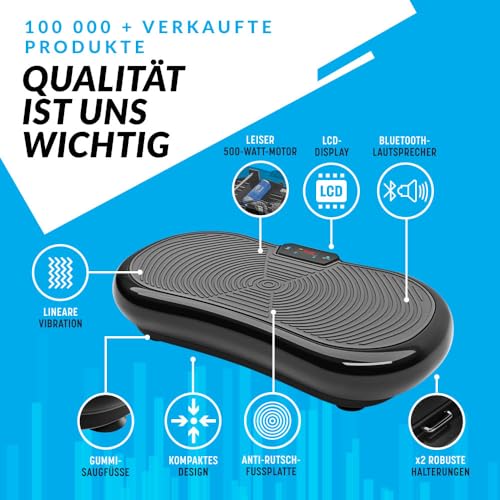KOMPLETTES HEIM-FITNESS PAKET – Großartige Bluetooth Lautsprecher, Diät- und Ernährungsleitfäden, die von Fitness-, Trainingsgeräte und Vibro Experten erstellt wurden, BONUS Widerstandsband für Ganzkörpertraining und eine schweißresistente ergonomische Fernbedienung.