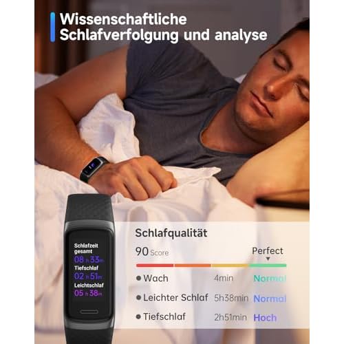 Mehrstufige Schlafüberwachung: Erfahren Sie mehr über Ihren Schlaf mit der erweiterten Analyse Ihrer Schlafqualität und -dauer in verschiedenen Phasen (Wach, Leichtschlaf, Tiefschlaf) dieses Aktivitätstrackers. Übernehmen Sie die Kontrolle über Ihren Schlaf und wachen Sie erfrischt und bereit auf, den Tag zu beginnen.