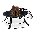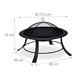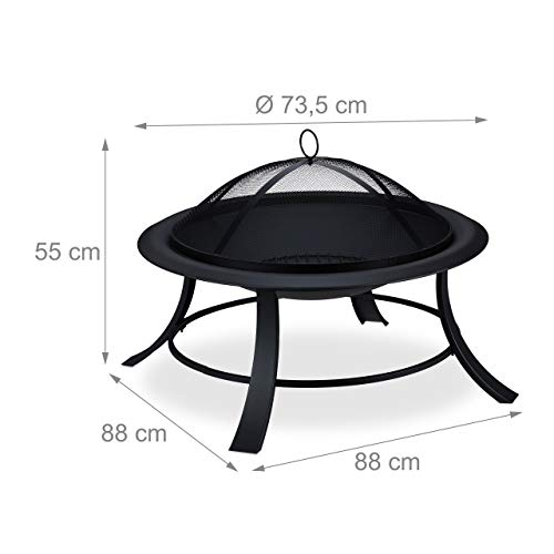 Relaxdays Feuerschale mit Funkenschutz, Garten & Terrasse, mit Schürhaken, Outdoor Feuerstelle, D: 73,5 cm, schwarz