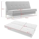 Dank des einfachen und bequemen Klappsystems lässt sich die Couch schnell und einfach in ein bequemes Bett verwandeln. Außerdem verfügt sie über ein praktisches Staufach unter der Sitzfläche, in dem Sie Bettzeug und andere Gegenstände platzsparend verstauen können.