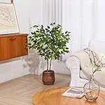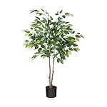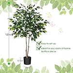 Kazeila Kunstpflanze Groß Ficus Benjamina 120cm Künstliche Pflanzen Deko Plastik Pflanze Kunstbaum für Schlafzimmer Büro(1Pack)
