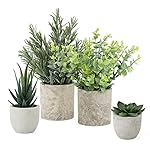 Veryhome 4 Stück Künstliche Pflanze in Töpfen Sukkulenten-Pflanzen Faux Eucalyptus Kleine Kunstpflanze Rosemary für Gefälschte Sukkulenten Home Desk Living Room Decor