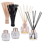 4Stück Glasdiffusorflaschen Set, Glasflaschen für Raumduft Diffusor mit 100Stück Rattanstäbchen, Diamond Design Leere Diffusorflasche mit Duftstäbchen, Behälter für Ätherische Öle
