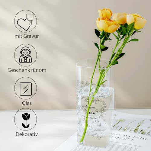 Oma Geschenk Blumenvase mit Gravur für die Beste Oma Aller Zeiten, Glasvase mit Blumenherz Geburtstagsgeschenk für Oma Deko-Vase Geschenk für Großmutter zum Geburtstag, Großmuttertag