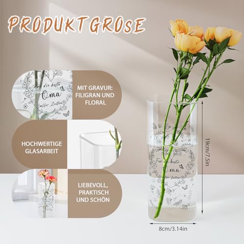 【Geschenke für Oma】Diese durchsichtige Vase ist das praktische Geschenk für den Geburtstag, Muttertag, Erntedankfest oder Weihnachten Ihrer Oma. Mit dieser Vase können Sie Ihrer Oma zeigen, wie sehr Sie sie lieben und ihr Ihre Fürsorge und Wärme vermitteln.
