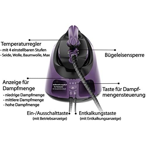 Tristan Auron Dampfbügelstation 6,5 bar Dampfdruck – 2800 W, 420g/Min. Dampfstoß I 1,7L Wassertank, Keramiksohle – Abschaltautomatik (Superfast Lila + Ablage)