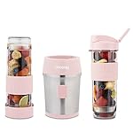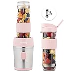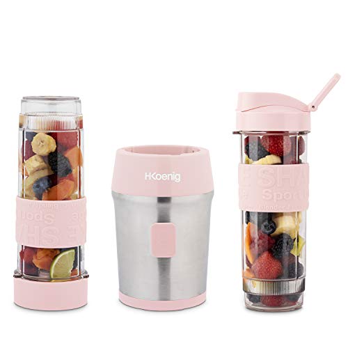 H.Koenig Mini Standmixer, tragbar, kompakt, 570 ml, SMOO12, BPA-frei, leistungsstark, 300 W, Smoothie-Mixer, 2 tragbare Flaschen, 4 Klingen aus Edelstahl, 2 Flaschen mit Reisedeckel, Pastellrosa