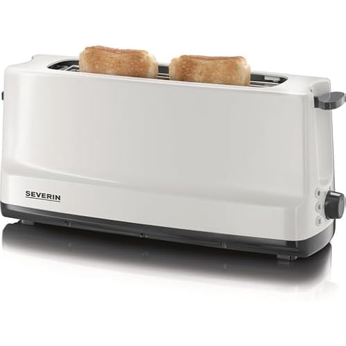 SEVERIN Automatik-Langschlitztoaster, Automatik-Toaster mit Brötchenaufsatz, Edelstahl Toaster zum Toasten, Auftauen und Erwärmen, 800 W, weiß / grau, AT 2232