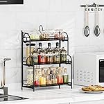 EKNITEY Küchen-Arbeitsplatten-Organizer – 3 Etagen, faltbar, für Badezimmer, Organisation und Aufbewahrung für Gewürze, Make-up, Schwarz (Schwarz)