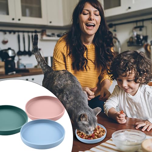 3 Stück Katzennapf, Futternapf Katze, 18cm Silikonnapf Breit Katzen napf, Tricolor Katzen näpfe, für Trockenfutter und Nassfutter(Dunkelgrün, Hellrosa, Nordisches Blau)