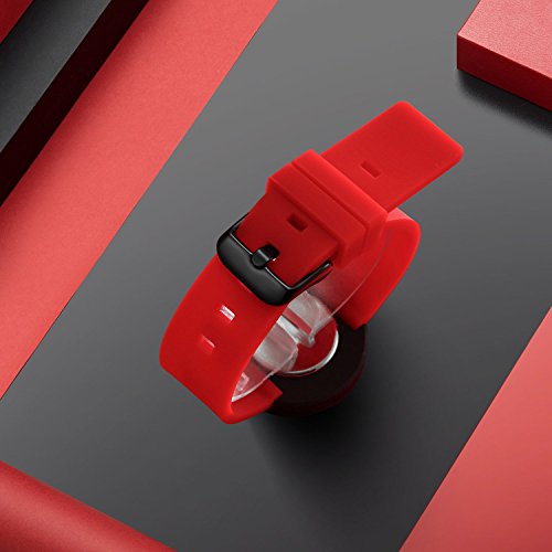 Comtex Damen Armbanduhr Schwarz Analog Quarz mit Rotes Silikon Armband SYM170088