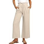 Cindeyar Leinenhose Damen Hosen Sommer Casual Leichte Palazzo Hose Hohe Taille Einfarbig Leinen Freizeithose Sommerhose Mit Taschen und Tunnelzug