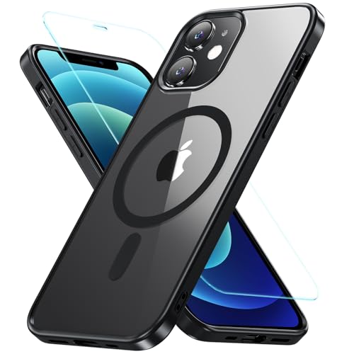 Für iPhone 12 Hülle, iPhone 12 Pro Hülle für Magsafe mit Panzer Schutz Glas, [Schutz in Militärqualität] Stoßfest Magnetisch Handyhülle iPhone 12| iPhone 12 Pro Case Dünn Cover Schutzhülle, Schwarz