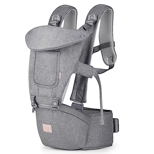 GAGAKU Universelle Babytrage Baby Hüftsitz 7 Tragepositionen für Neugeborene bis Kleinkinder von 0-36 Monaten, Abnehmbarer Taillen Hocker für Babys – Grau