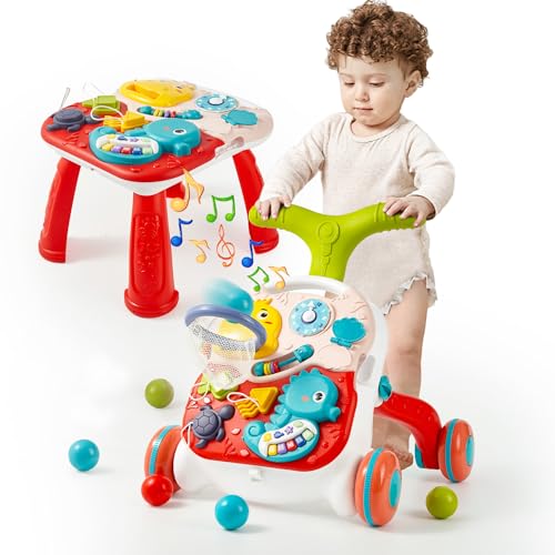 Hawthyhome Baby Spiel- und Laufwagen, 3 in 1 Lauflernwagen und Abnehmbarem Spielboard, Faltbar Gehspielzeug mit Rollen Musik, für Kinder von 12-36 Monaten