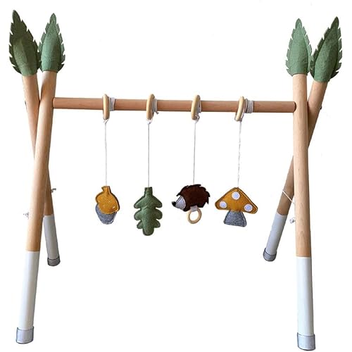 HB.YE Babyspielzeug aus Holz Spielbogen Puzzle Gym Spieltrapez inkl.Anhänger Baby-Fitness-Spielzeug/Babyzimmer für Kinderzimmer Dekoration (C-Weiß + Grün)