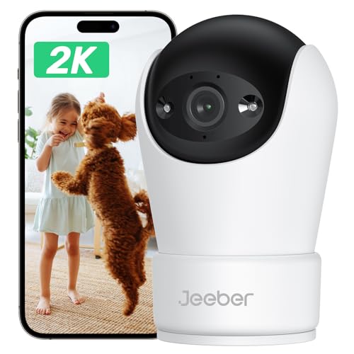 Jeeber 24/7 Haustierkamera mit app 360 Grad Schwenkbare WLAN Indoor Kamera überwachung Innen,2K WLAN Überwachungskamera Innen mit Automatische Verfolgung,Zwei-Wege-Audio Hunde Kamera für Haustier/Baby