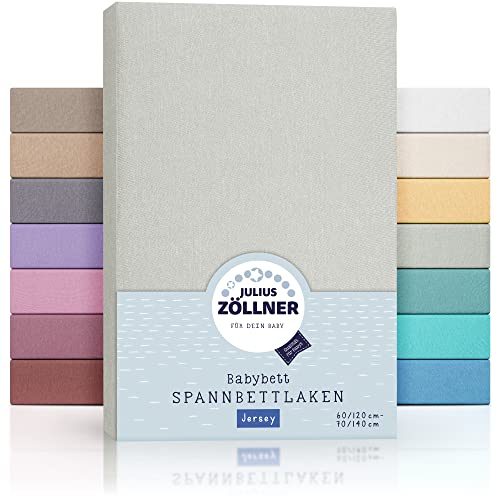 Julius Zöllner Jersey Spannbettlaken für Baby- & Kinderbett, 100% Jersey-Baumwolle, OEKO-TEX Standard 100 zertifiziert, Größe: 60x120cm / 70x140cm, 1er Pack, hellgrau