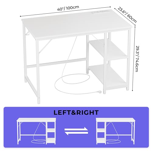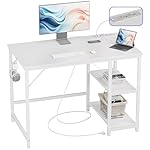 JOISCOPE Ergonomischer Home-Office Schreibtisch mit USB & Type-C Anschluss, 100×60 cm, Weiß Optik, Multifunktionaler Computertisch für Gaming und Studium, mit Regal