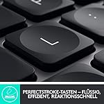 PERFEKTER TASTENANSCHLAG: Die ausgehöhlten Tasten passen sich Ihren Fingerkuppen an. MX Keys schafft eine natürliche Handhaltung und die matte Oberfläche sorgt für müheloses Gleiten über die Tasten.