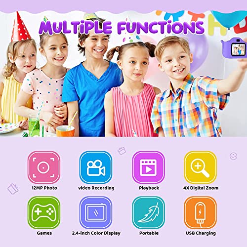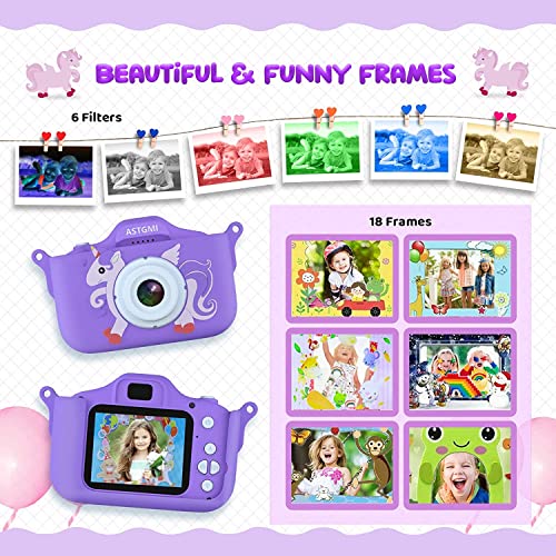 Kinder Kamera, 2.0”Display Digitalkamera,Geschenke für 3 4 5 6 8 7 9 10 11 Jahre Jungen und mädchen, 1080P HD Anti-Drop Fotoapparat für Geburtstagsgeschenk Weihnachten Spielzeug (Lila)
