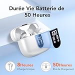 LED-Leistungsanzeige und 50 Stunden Spielzeit: Kopfhörer verfügen über eine doppelte LED-Anzeige, die den Akkustand sowohl des Ladefachs als auch der bluetooth kopfhörer genau anzeigt. Darüber hinaus hat das kopfhörer kabellos X08-BK eine Akkulaufzeit von 8 Stunden, und das Ladefach bietet zusätzliche 50 Stunden Nutzungsdauer.