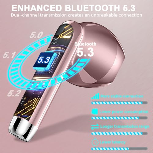 Bluetooth Kopfhörer, Kopfhörer Kabellos Bluetooth 5.3 In Ear Kopfhörer mit 4 HD Mic, 2024 Kabellose Kopfhörer 42Std ENC Noise Cancelling Earbuds Tiefer Bass, IP7 Wasserdicht Ohrhörer USB-C, Rosé Gold