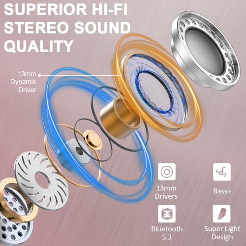 2024 Neue Bluetooth 5.3-Chip: Die kopfhörer kabellos bluetooth sind mit der klassenführendes bluetooth 5.3-technologie ausgestattet und die geschwindigkeit der audiodatenübertragung wird um bis zu 75 % erhöht, eine kürzere Verzögerung und einen geringeren Energieverbrauch bei der Datenübertragung gewährleistet (Die Übertragungsreichweite beträgt bis zu 15m). Nach der ersten Verbindung wird das bluetooth kopfhörer beim nächsten Einschalten automatisch mit Ihrem Gerät verbunden.